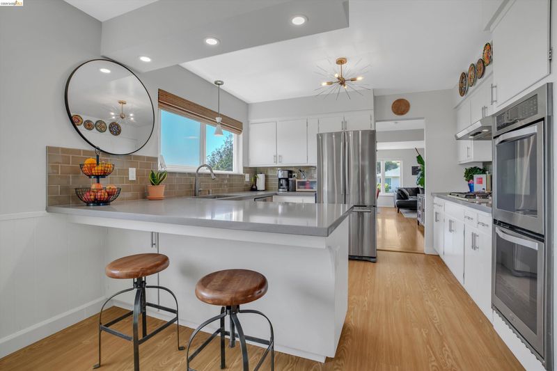 This beautifully renovated home situated at the top of Potrero Avenue boasts stunning unobstructed views of San Francisco and the Golden Gate, Bay Bridge, Angel Island, Alcatraz, and the panoramic views of the Bay. With three bedrooms, two family rooms, and dedicated office space, and custom built designer bar, and a private exterior oasis, this is an unforgettable home! Through the front door, enter into the spacious formal living room with oversized large picture windows and a grand limestone fireplace. The connected dining room flows into the renovated kitchen featuring wolf cook top, new quartz countertops, stainless steel appliances, a double oven, lovely sage green tile, and ample storage space. Through the kitchen is the main floor family room with charming wainscoting throughout and a custom bamboo built in bar. From multiple places, you are welcomed to the outdoors through the glass doorways leading to new decking overlooking the garden, patio and spa. These manicured yards will impress any landscape architect. Updates throughout include improvements including owned solar, a standing seam metal roof, tankless water heater and more. You will appreciate the owner pride both inside and out! Zoned for top-performing Madera Elementary. Truly a rare one of a kind property!