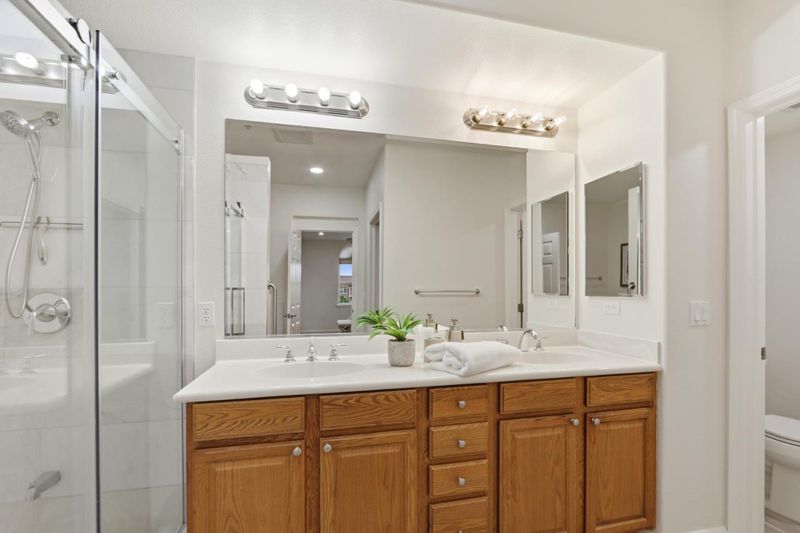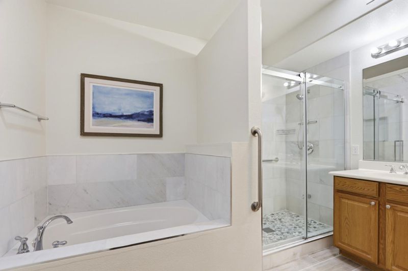 - Double Sinks, Stall Shower, Tub