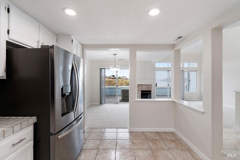 Experience luxury in this exquisite 3 Bed/3 Bath two-story Condo nestled in Glen Cove's Quiet Harbor, wear sweeping water views of the Carquinez Strait and Mt. Diablo take center stage. This open floorplan is flooded with natural light, perfectly complementing the freshly painted walls and plush brand new carpeting. Enjoy casual meals in the spacious eat-in kitchen, complete with timeless tile countertops and modern overhead recessed lighting. Relax by the fireplace in the open Living Room/Dining Room Combo, where vaulted ceilings and large windows perfectly frame the Carquinez Strait. This thoughtful floorplan includes a private Bedroom and full Bathroom downstairs, plus two Master Bedroom Suites upstairs for ultimate privacy. Indoor Laundry Room (Washer/Dryer included). Central Heating & AC. Attached one-car Garage w/ interior access. Large Patio w/ brand new Belgard Contemporary Catalina Pavers. Community pool, hot tub & picnic area. Close to hiking & biking trails. Imagine waking up and stepping onto your private patio with a fresh cup of coffee, watching the water ahead shimmer in a thousand restless shades of blue!