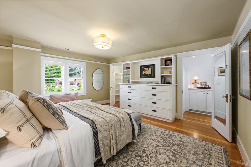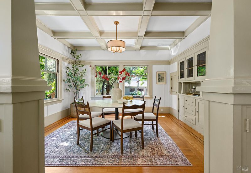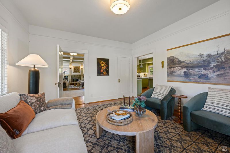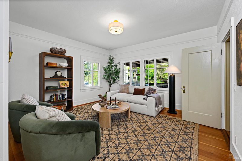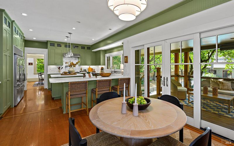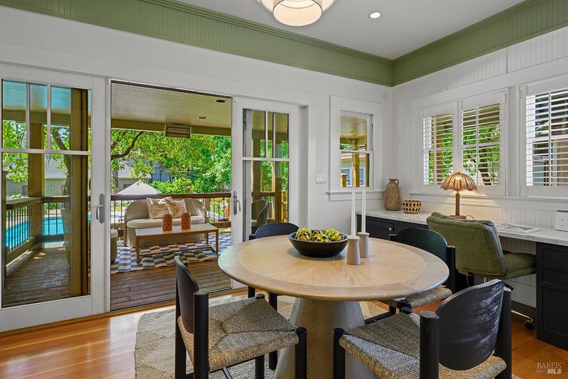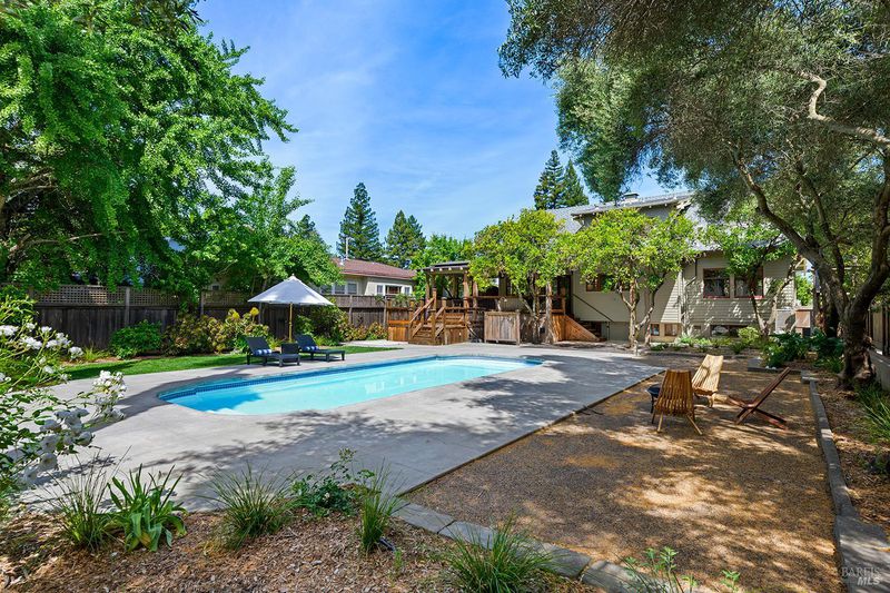 Nestled on one of Healdsburg's most coveted streets, just a short stroll from the vibrant Plaza, 438 Matheson St. is a stunning example of early 20th-century charm paired with modern-day versatility. Set on a generous corner lot spanning approximately a quarter acre, this property boasts a serene oasis with formal gardens, a sparkling pool, and room to expand with additional flower or vegetable beds. Steeped in character, the over 3,000 sq. ft. home (+/-) spans three thoughtfully designed levels. The main floor has a formal parlor and dining room, a beautifully remodeled gourmet kitchen, and a cozy media room, all anchored by timeless details and abundant natural light. Upstairs, two spacious bedrooms plus an office and two bathrooms share the spotlight with a delightful covered porch, perfect for enjoying quiet moments overlooking the picturesque street below. The versatile lower level opens up endless possibilities, offering space for one to two additional bedrooms, a home office, or even a private theater. Complete with a full bath and laundry room, it's a flexible haven for evolving needs. Outside, a detached garage sparks inspiration with its potentialimagine transforming it into a summer kitchen, guest quarters, or an ADU. Recent upgrades, including fresh interior and exterior paint, a brand-new roof, and a solar system, make this home as efficient as it is enchanting. 438 Matheson seamlessly blends timeless elegance with modern functionality, offering an unparalleled opportunity to live in one of Healdsburg's most desirable locations.