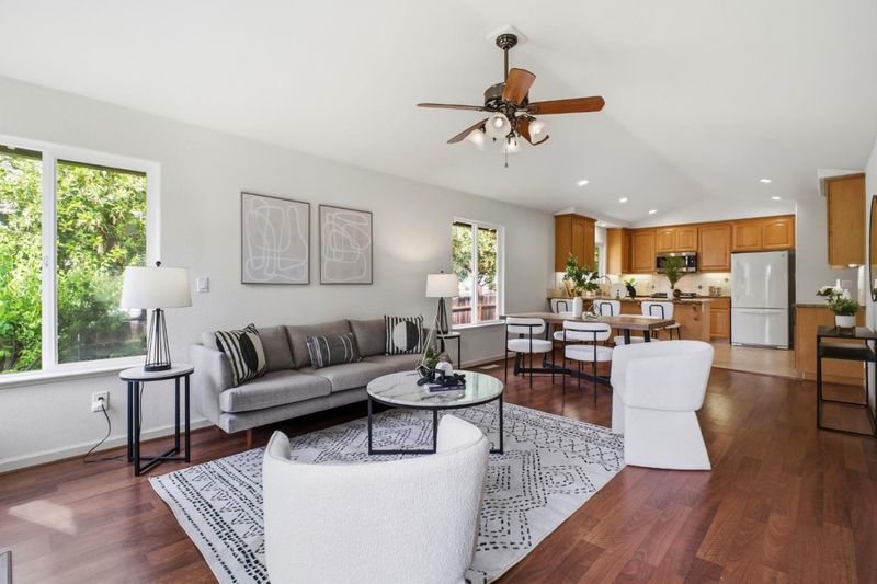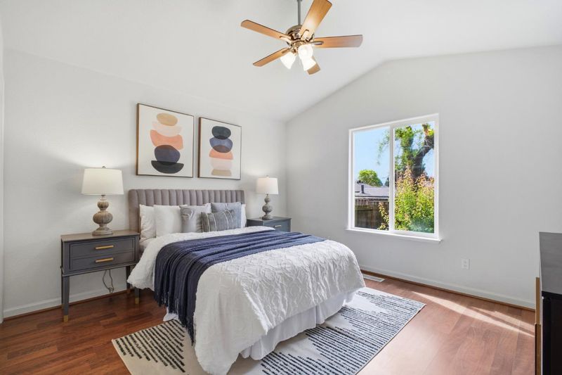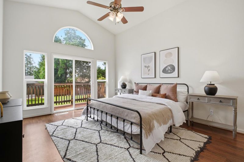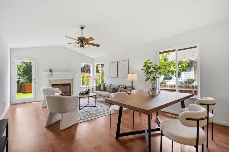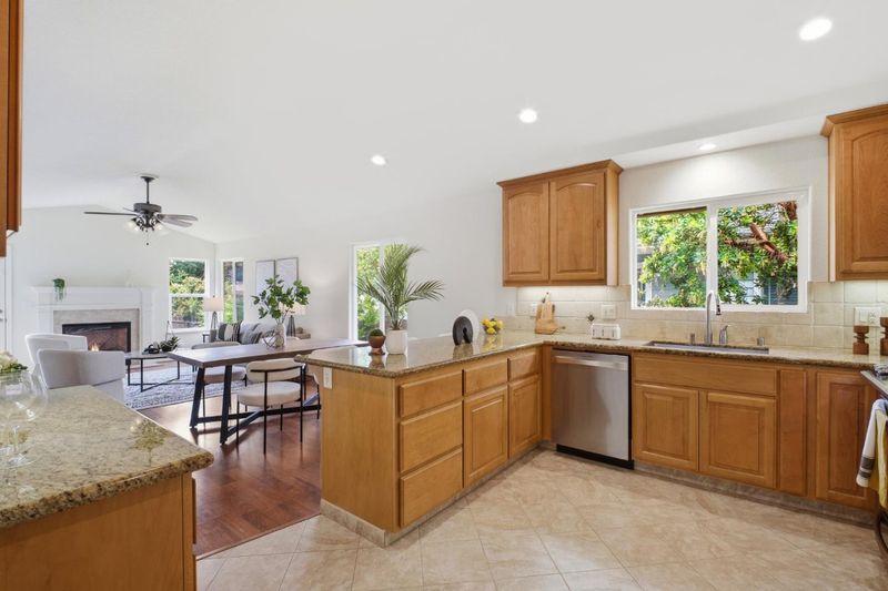 Welcome to this beautifully maintained home nestled in one of Castro Valley's most sought-after neighborhoods. Built in 2012, this 1,718 sqft residence sits on an expansive 9,440 sqft lot and offers the perfect blend of comfort, style, and space. Step inside to soaring vaulted ceilings and rich flooring that flows through the open living and dining areas, anchored by a cozy fireplace and flooded with natural light from oversized windows. The kitchen features granite countertops, a peninsula breakfast bar, stainless steel appliances, and warm maple cabinetry, ideal for everyday living and entertaining alike. The spacious primary suite is a true retreat, boasting cathedral ceilings, a private deck overlooking the backyard, a walk in closet, and an ensuite bath with dual vanity and glass enclosed shower. Two additional bedrooms and a full hall bath round out the thoughtfully designed floor plan. Out back, enjoy one of the largest lots on the street. A lush, fully fenced yard with mature fruit trees, a raised deck, and plenty of room to garden, play, or entertain. An indoor laundry area and 2 car garage completes the package. Power lines kept underground. Minutes to Castro Valley BART, top-rated schools, shopping, and freeway access. This one won't last.