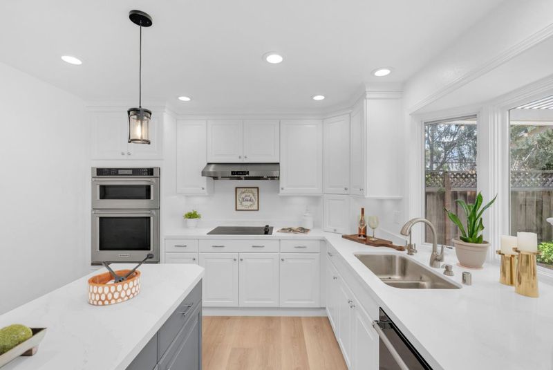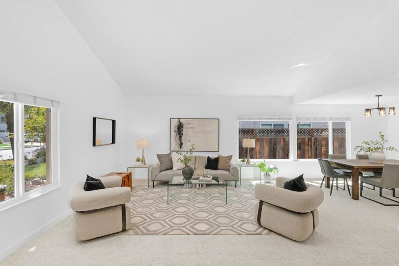 Rare home with a 3-car garage, remodeled kitchen, and professionally designed landscaping, ideally situated on a quiet cul-de-sac in Blossom Valley's scenic foothills. Soaring ceilings and abundant natural light create an airy, inviting feel, complemented by updated flooring and a seamless flow throughout. The remodeled kitchen is the true centerpiece, featuring crisp white cabinetry, quartz countertops, a spacious island, and an open layout that connects effortlessly to the dining area and breakfast nook. Designed for both everyday living and entertaining, the main living spaces feel connected yet comfortable, with large windows framing peaceful hill views. The outdoor space offers a covered patio and an inviting setting to relax or host. Additional upgrades including reverse osmosis, whole-home water filtration, and a water softener enhance everyday living. Ideally located near parks, shopping, dining, commuter routes, and a nearby golf course, this home offers a rare balance of tranquility and convenience.