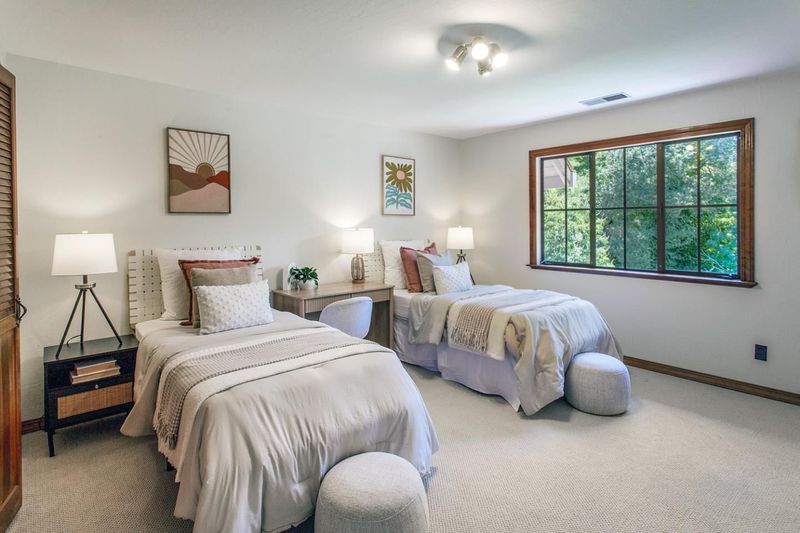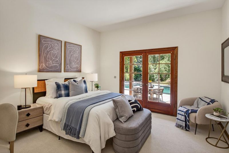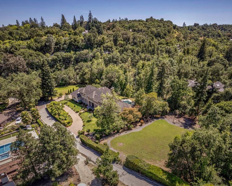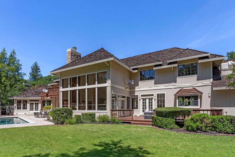 Tucked away on a private, gated cul-de-sac, 200 Todo El Mundo in Woodside offers the perfect balance of privacy, convenience, and natural beauty. Situated on approximately 1.5 acres of flat, usable land bordered by a seasonal creek, the property features expansive front and back irrigated lawns and a peaceful, park-like setting. The European-influenced traditional 4,885-square-foot main residence is designed for effortless indoor-outdoor entertaining, with several rooms opening through French doors to two sunny decks. A dramatic living room with soaring two-story ceilings and fireplace anchors the home, complemented by a spacious family room with its own fireplace and wet bar, a cozy kitchen and a private dining room ideal for intimate gatherings. The thoughtful five-bedroom, three-and-a-half-bath layout includes a serene upper-level Primary Suite with a full bath, sauna, fireplace and walk-in closet, two additional upstairs bedrooms and two main-level bedrooms with a full bath and tub. With its proximity to Woodside Town Center, Woodside Plaza shopping, Sand Hill Road, Stanford University, and nearby freeway access to major Silicon Valley destinations, this exceptional property offers a rare opportunity to enjoy the Woodside lifestylequiet, connected, and surrounded by nature