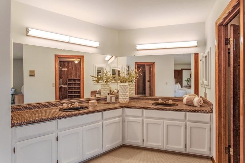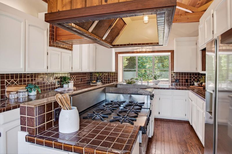 - Cooktop - Gas, Countertop - Tile, Dishwasher, Island, Oven - Built-In, Oven - Double, Refrigerator