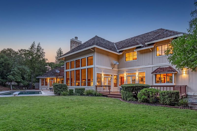 Tucked away on private gated cul-de-sac, this 5 BR East Coast-inspired traditional home on flat 1.5 acres with 2 large lawns, entertaining decks and pool offers the perfect balance of privacy, convenience, and natural beauty