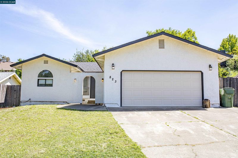 Functional, freshly-painted, clean, and ready for immediate move-in, this 1,538+/- sq ft home offers a comfortable layout with high ceilings and durable laminate-style flooring and tile throughout. The living area features a decorative brick-laid stone fireplace that serves as a warm, colored central focal point. The kitchen is well-equipped with quartz countertops, custom white cabinetry, recessed lighting, a gas range, and a brand-new dishwasher and refrigerator. Bathrooms have been partially updated and include both a shower-over-tub and a separate step-in shower for convenience. Fresh interior paint, central heating, and air make the home easy to settle into from day one. With a few "honey-do" improvements, you can raise the level of design aesthetics to your own personal style Step outside through double doors to a deck patio and a large, fenced yard. Recent improvements include updated irrigation and drainage, providing a solid starting point for creating the outdoor space you want. Additional features include an arched entry, a two-car garage, and two extra off-street parking spaces. Seller is open and ready to work with buyers to ensure this is the right fit. Located near a local K–8 school, with shopping close by. Enjoy nearby walking trails and ponds at Lema Ranch, along with quick access to Highway 44 and I-5 for commuting. Just a short drive to the Sundial Bridge.