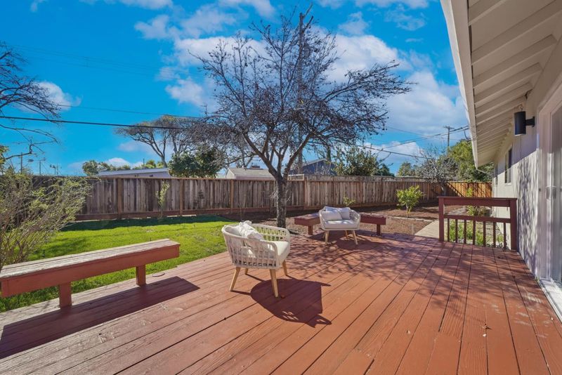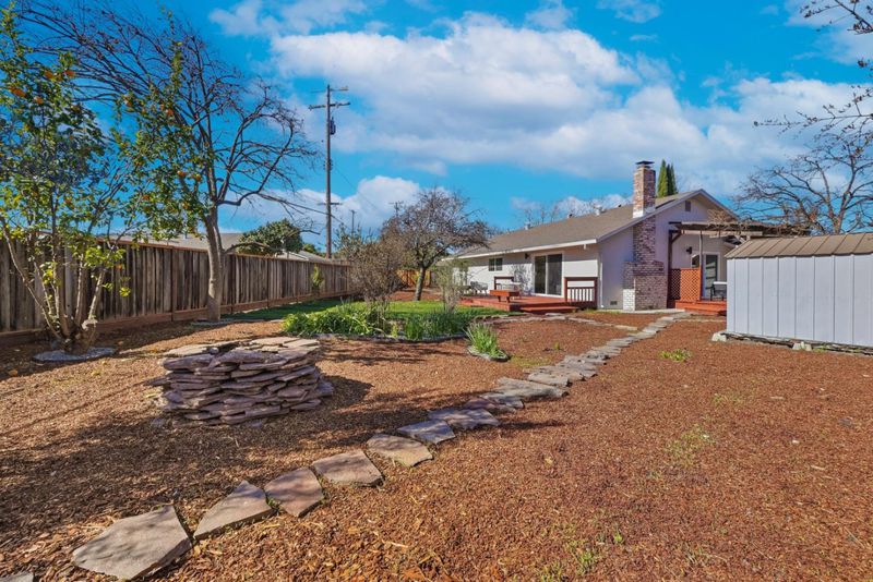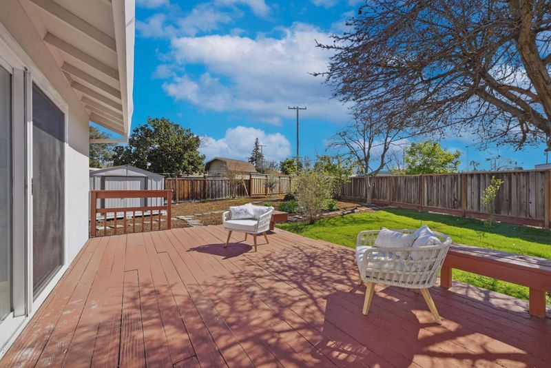 Rare opportunity on a huge 10,000+ sq ft lot in a quiet cul-de-sac, just a short walk to Central Park! This beautifully updated 4-bedroom, 2-bathroom single-family home offers bright, open floor plan filled with abundant natural light and a warm, inviting living space with a cozy fireplace, perfect for everyday living and entertaining. The upgraded kitchen offers granite countertops, stainless steel appliances, central island, and recessed lighting, blending style and functionality. Step outside to enjoy exceptional indoor-outdoor living with multiple decks, including pergola-covered lounge area ideal for relaxing or hosting guests. The huge backyard provides endless possibilities for gardening, play, or future expansion, and includes a convenient storage shed.Additional features include recessed lighting, central heating, A/C, and more! Prime location with easy access to major freeways and expressways. Just minutes to NVIDIA (~5 mins) and Apple Park (~10 mins). Close to shopping, dining and daily essentials. Walk to Central Park and the library, and near top-rated schools.
