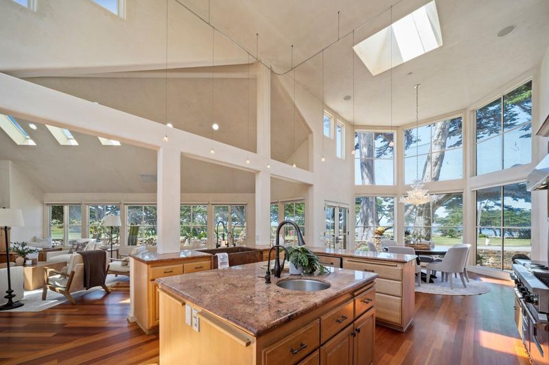 Ocean and golf course views take center stage in this Tuscan-inspired Pacific Grove home, ideally located just a hundred yards from the front door to the ocean, scenic trails, and Pacific Grove Golf Links, with easy access to local restaurants and coffee shops. Set on a spacious 8,000 sq ft corner lot, the home features an open layout with walls of windows capturing the views from the dining area, main living spaces, and primary suite. The upstairs primary offers a private retreat with ocean views, an office, and a balcony. Additional highlights include two guest bedrooms downstairs, a sunroom, and an attached guest unit above the garage with its own private entrance. A rare opportunity to enjoy coastal living with views, character, and a prime location.