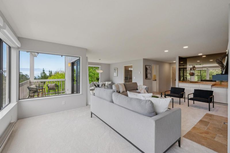 Located within the gated community of Pebble Beach, this remodeled single-level residence at Shepherds Knoll offers privacy and convenient street-level access. As an end unit, the home enjoys abundant natural light and tranquil views of Monterey Bay framed by the surrounding pine treetops. The open living space centers around a gas fireplace and flows to a private balcony, while the updated kitchen features stainless steel appliances, granite countertops, and travertine and marble finishes. Rare within Shepherds Knoll, the property includes two separate garages that can be accessed by nearby elevators, providing exceptional storage and flexible space for prized vehicles. Just minutes from Pebble Beachs renowned golf courses, coastal trails, shops, and beaches, the residence offers an opportunity to enjoy the relaxed lifestyle of the Monterey Peninsula.