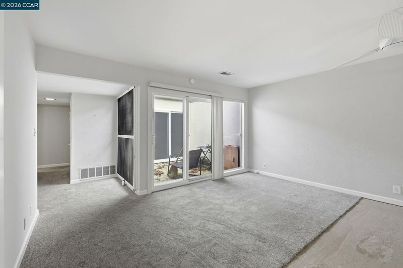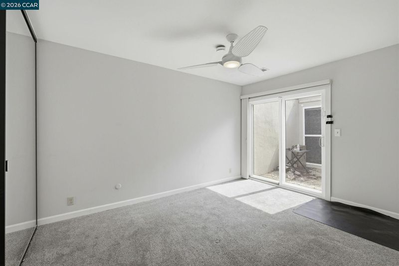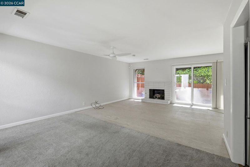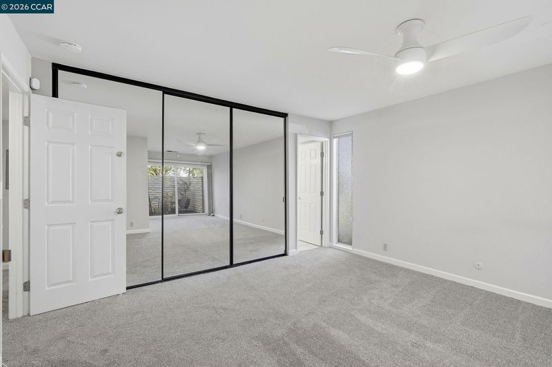 Rare no-step, single-story end-unit living—this light-filled and beautifully updated, this desirable end-unit offers a functional and inviting single-level layout. Featuring two bedrooms and two bathrooms, the home is centered around a stunning atrium that fills the space with natural light and creates a unique separation between living and sleeping areas. Brand-new carpet and industrial EVA flooring enhances the interior, while the updated kitchen features quartz countertops, stainless steel appliances, and a large picture window overlooking lush landscaping. The living room showcases expansive glass and a cozy gas fireplace, perfect for relaxing or entertaining. The spacious primary suite includes an ensuite bathroom and a private, enclosed patio. The second bedroom opens directly to the atrium, adding to the home’s airy indoor-outdoor feel. Additional highlights include excellent insulation and a newer roof, brand new windows and doors, specialized security screens, state of the art security system and brand new garage door. Residents enjoy access to three pools, walking trails, picnic areas, RV parking/storage, and beautifully maintained green space. First Open house Sunday 4/19