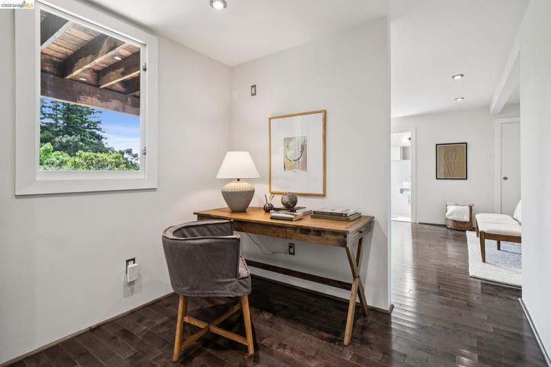 Built in 1927 and beautifully reimagined, this two-story residence perfectly blends historic charm with modern luxury. The home features graceful arches, dark hardwood floors, and a sun-drenched living room with a wood-burning fireplace and French doors leading to an expansive deck. At its heart is a chef’s kitchen boasting custom cabinetry, Quartz surfaces, and premier appliances, with a bay window overlooking a private garden sanctuary featuring a hot tub, fountain, and rare original stone fireplace. The thoughtful layout includes two bright upstairs bedrooms and an updated bath. The lower-level primary suite offers a private entrance, office space, and stylish bath—ideal for an in-law unit or quiet retreat. Located moments from Montclair Village and SF transport, this is a rare urban oasis where timeless design meets natural beauty.