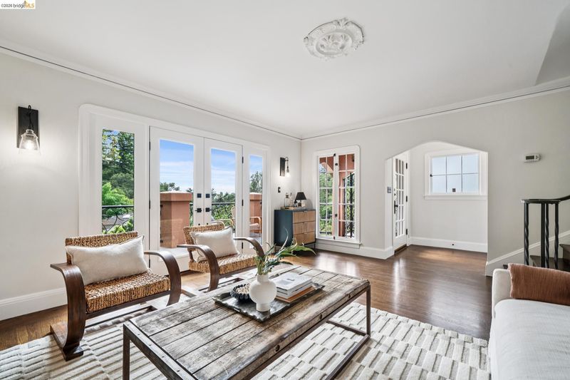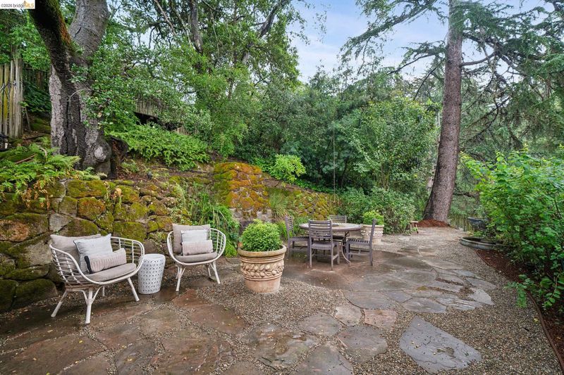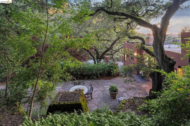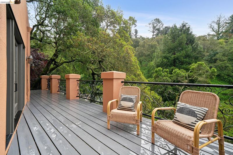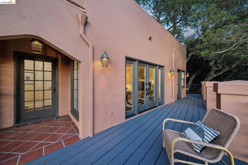 Built in 1927 and beautifully reimagined, this impressive two story Mediterranean home on the Piedmont side of Montclair offers the perfect harmony of historic charm and modern luxury. Surrounded by mature, lush landscaping and custom wrought iron railings, the residence features a desirable layout characterized by graceful arches and pristine dark hardwood floors. The sun-drenched formal living room, anchored by a beautifully detailed wood-burning fireplace, has elegant French doors to an expansive deck, offering a seamless connection to the outdoors. At the heart of the home is a chef’s kitchen featuring custom cabinetry, Quartz countertops and backsplash, and premier stainless appliances. A large bay window overlooks a tranquil, private garden sanctuary complete with a hot tub, a fountain, and a rare, original built-in stone fireplace. The thoughtful floor plan includes two light-filled bedrooms and an elegantly updated bath on the upper level. The lower-level primary suite provides exceptional flexibility with an adjoining office space, a stylish full bath, and a separate entrance. It is perfectly suited as a private retreat, home office, or in-law unit. Modern comfort meets timeless design with thoughtful upgrades throughout. Located just moments from Montclair Village, parks, tennis courts, and a charming 1930s storybook library. With easy access to San Francisco transportation, this home is a rare urban retreat where luxury and natural beauty exist in perfect harmony.