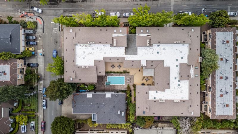 Top-floor, end-unit penthouse condo just blocks from vibrant downtown San Carlos. This 2-bedroom, 2-bathroom residence is ideally positioned in one of the most desirable locations in the building. A formal entry welcomes you into a light-filled living room with soaring vaulted ceilings, seamlessly connecting to a formal dining area that opens onto a private deck nestled in the trees. The thoughtfully designed kitchen offers both functionality and flow. Just down the hall you have a spacious primary suite with dual closets, while the second bedroom includes its own private balcony, offering added comfort and privacy. A separate laundry room with washer and dryer enhances everyday convenience. Prime location, walking distance to restaurants, shops, the library, adult community center, top-rated schools, and just a short stroll to the Caltrain station. This well-maintained, contemporary complex consists of only 24 units and offers recreation rooms on each floor, a pool and spa, inviting lobby, elevator access, and wide, well-lit hallways. Additional highlights include extra storage and two secure underground parking spaces.