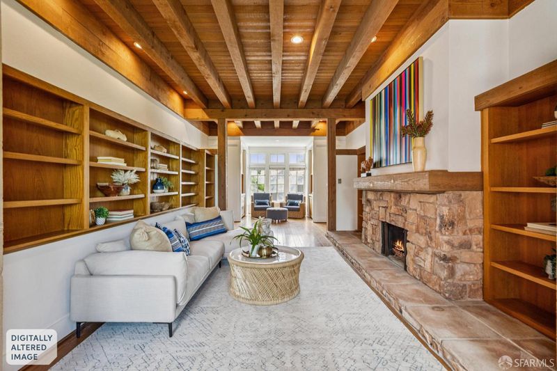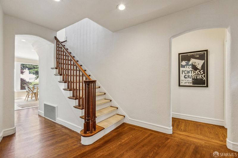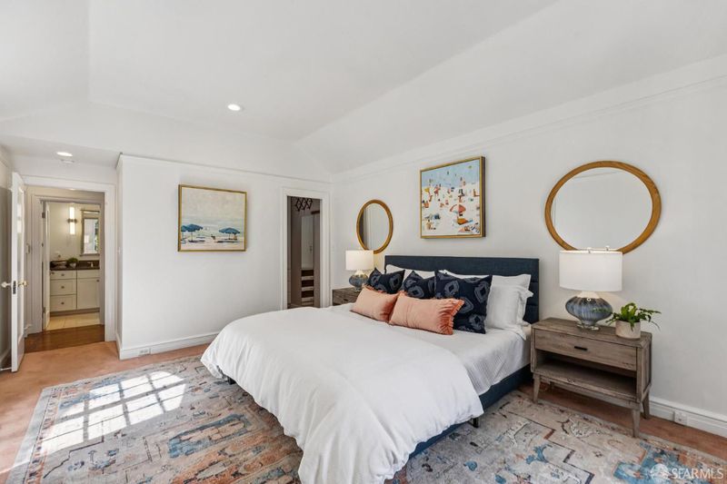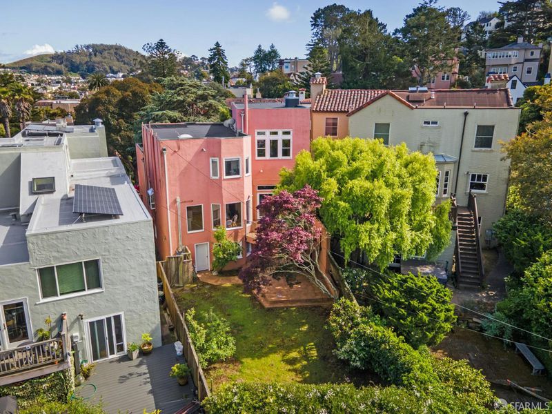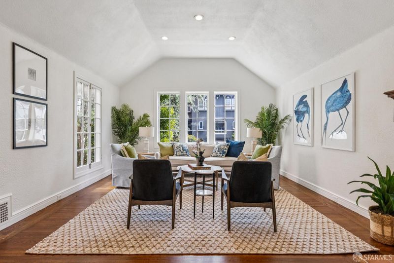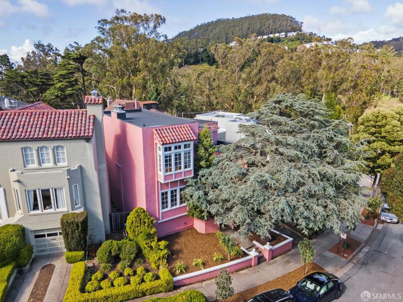 Perched on a serene, tree-lined street in the coveted Forest Hill, this 1924 Spanish Colonial Revival masterfully combines historic charm with contemporary updates. The expansive 3,145-square-foot residence makes a breathtaking first impression with a formal foyer that flows into a grand living and dining commons, defined by coved vault ceilings, rich hardwood floors, and a dramatic fireplace. Designed for a seamless indoor-outdoor lifestyle, sliding glass doors dissolve the boundary between the great room and a two-story tiled deck, which overlooks a lush, vast backyard filled with mature plantings. The heart of the home is a meticulously remodeled chef's kitchen featuring quartz countertops, premium SubZero and Bosch appliances, and a custom movable island. A sun-drenched breakfast nook with French doors offers direct deck access. The main level also hosts the primary bedroom, complete with a walk-in closet, as well as a beautifully renovated dual-sink bath. Ascending the central staircase, the light-filled upper level reveals two generous bedrooms, a dedicated office with professional studio lighting, and a magnificent family room anchored by elevated redwood-planked ceilings and wet-bar potential. The home's versatile floor plan extends to a lower-level flex room, ideal for a playroom or office, featuring a half-bath and direct garden access, while the large garage provides a 250-bottle wine closet, laundry, and ample storage. This residence offers an unparalleled lifestyle close to JP Murphy Park and the Forest Hill Muni Station, with the added prestige of the Forest Hill Association. Residents enjoy exclusive access to the historic Bernard Maybeck-designed clubhouse and impeccably manicured community gardens, all within one of San Francisco's most storied and tranquil neighborhoods.