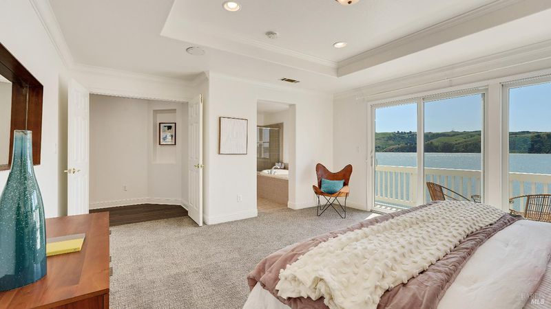 Views, views, and more views! Panoramic views of the Strait, the Carquinez Bridge, the Hills of Martinez, Port Costa and Crockett from virtually every room! This home boasts 2139 sq. ft. of waterfront living at its finest. Beautiful Wood Flooring throughout the Downstairs, Stairway, Loft and Workstation. Crown Molding cap the rooms. 1st floor features include a 1/2 Bath, Combo Living/Dining Room, Family room with Fireplace. The Kitchen has new stainless appliances, Granite Slab counters, Center Island, ample storage and a walk-in pantry. 2 large glass patio doors draw in the view, natural light and lead you out to your fenced patio. Upstairs has 3 Bedrooms, 2 full Baths, Loft/Workstation and Laundry Room. Generous sized secondary bedrooms. The view from the Primary Bedroom is spectacular. Step out to the upper deck and watch the sunset while enjoying your favorite beverage. Primary bath has a dual sink vanity, jetted tub and large shower with bench seat. Finished garage. Stroll along the coastline promenade or head 1 block over to First St. home to multiple restaurants and shopping. The Waterfront homes on Anderson Ln. scarcely come on the market. Don't miss this rare opportunity.