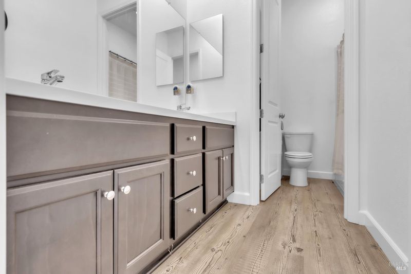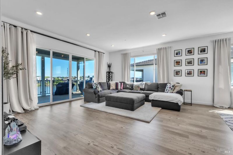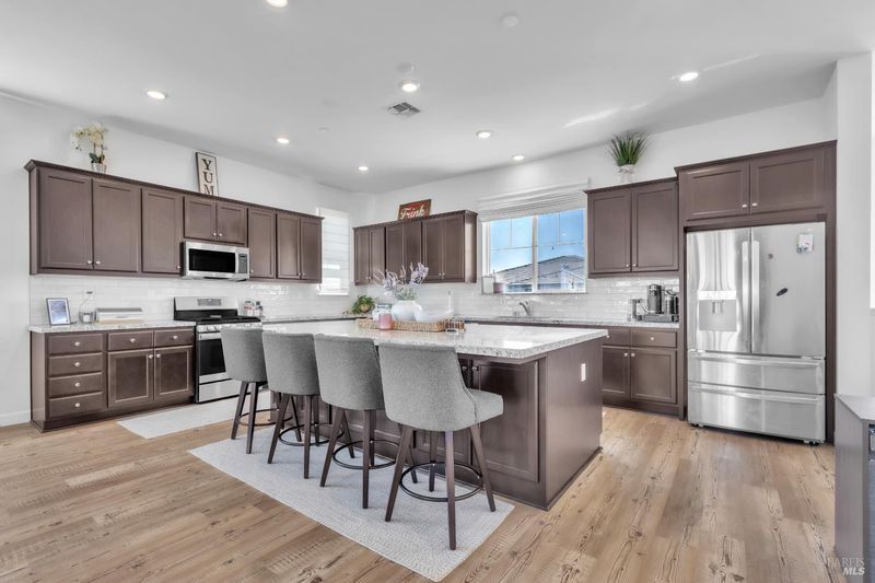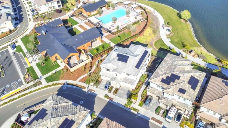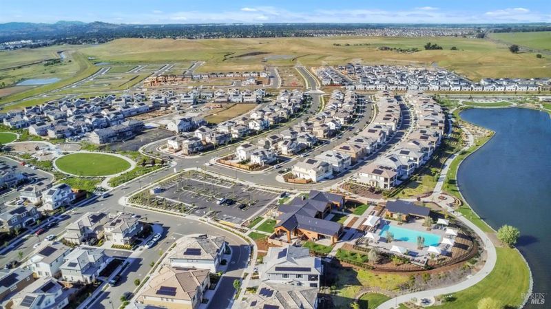 Set along the water in one of Fairfield's newer communities, this 2023-built home offers a refined blend of modern design, natural light, and uninterrupted lake views. With over 2,300 sq ft, this 3-bedroom, 2-bath home features a spacious open-concept layout where the kitchen, dining, and living areas connect effortlessly. The kitchen stands out with an oversized island, generous cabinetry, and a clean, contemporary finish designed for both everyday living and casual gatherings. Wide-plank flooring and expansive sliding glass doors create a bright, open feel while naturally drawing your attention to the lake beyond. Seller-owned solar adds to the home's overall efficiency. The primary bedroom is positioned to take in the water views, offering a spacious, comfortable retreat with a walk-in closet. The living space extends seamlessly to a covered deck overlooking the lake, complete with outdoor seating and a fire feature, creating an inviting setting for unwinding or entertaining without the maintenance of a traditional backyard. Located just moments from the community pool, clubhouse, and walking paths, this home offers convenient access to shopping, dining, and major commute routes. It is just minutes from Travis Air Force Base, with Napa Valley only a short drive away. Modern, low-maintenance, and set on the lake, this home offers both simplicity and presence.