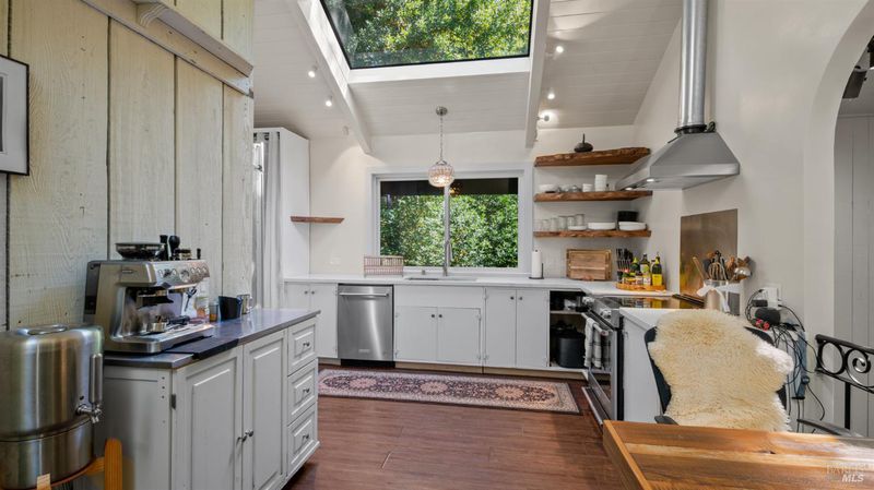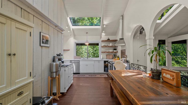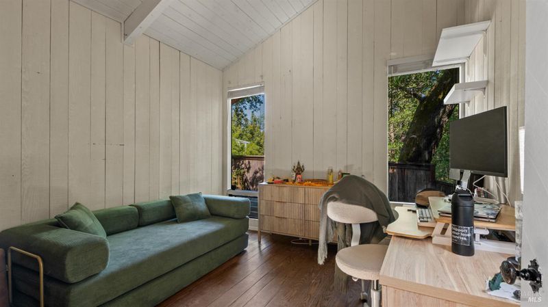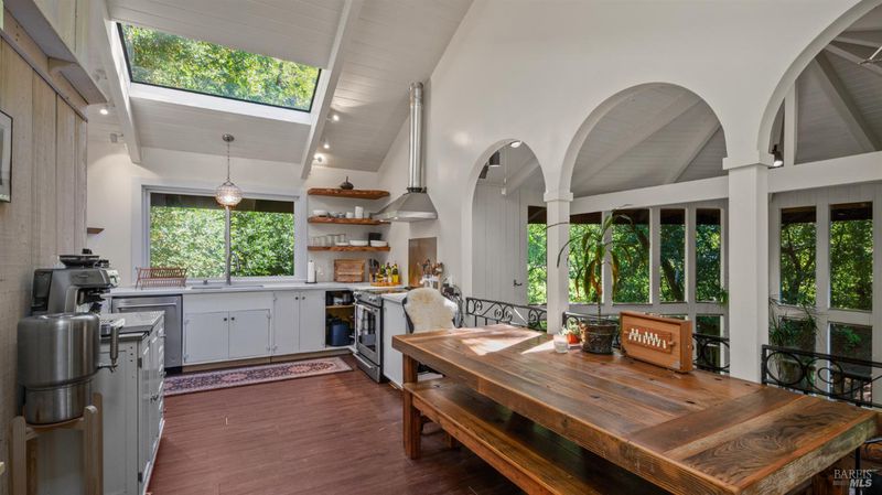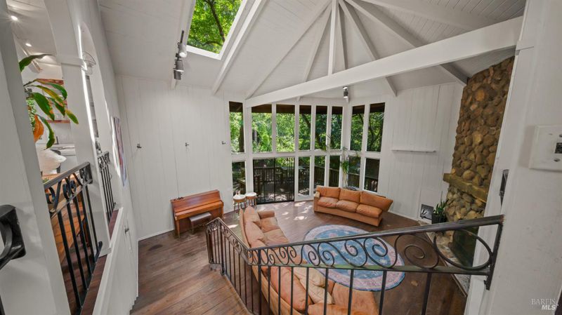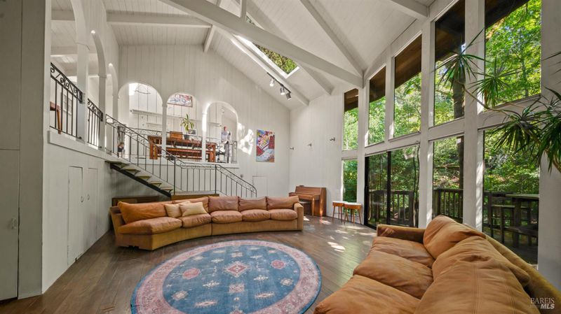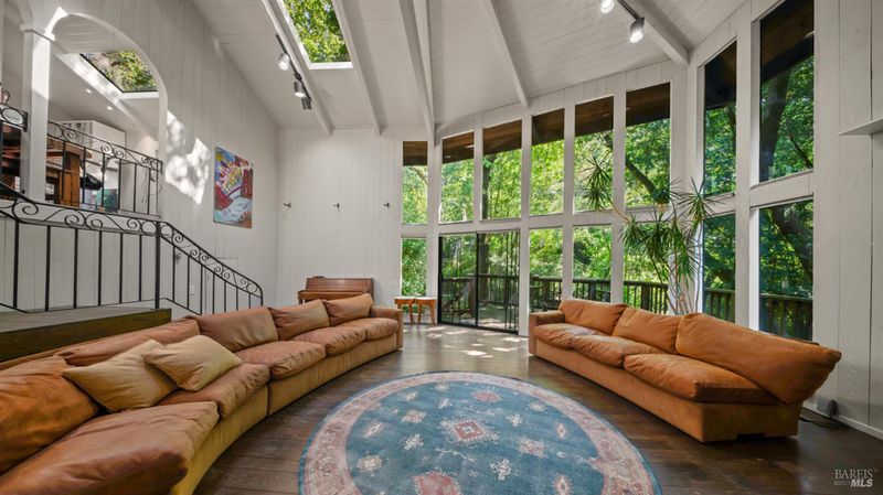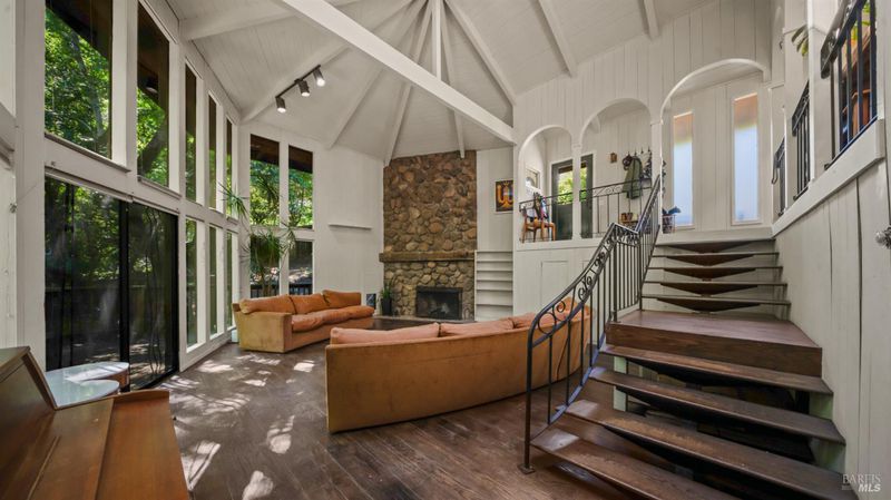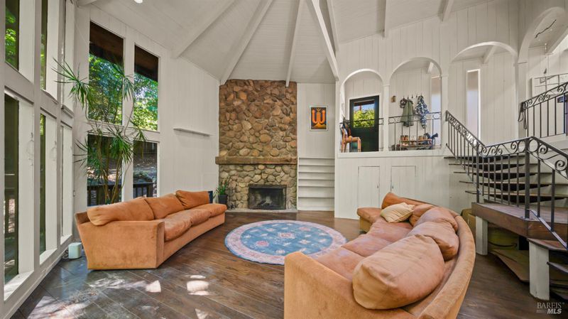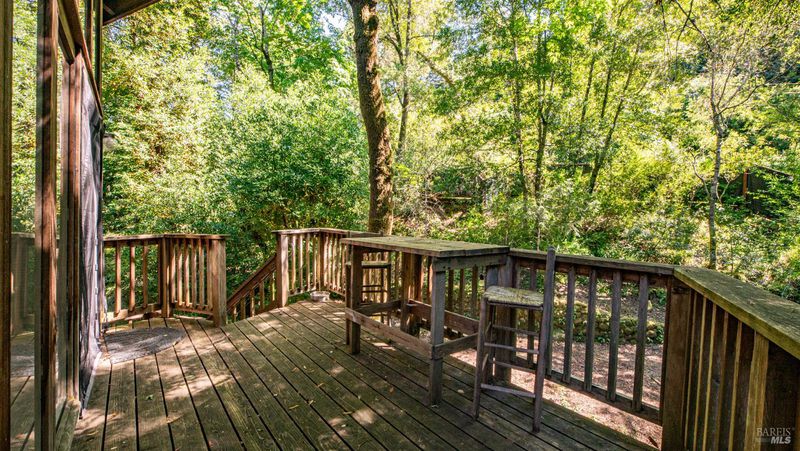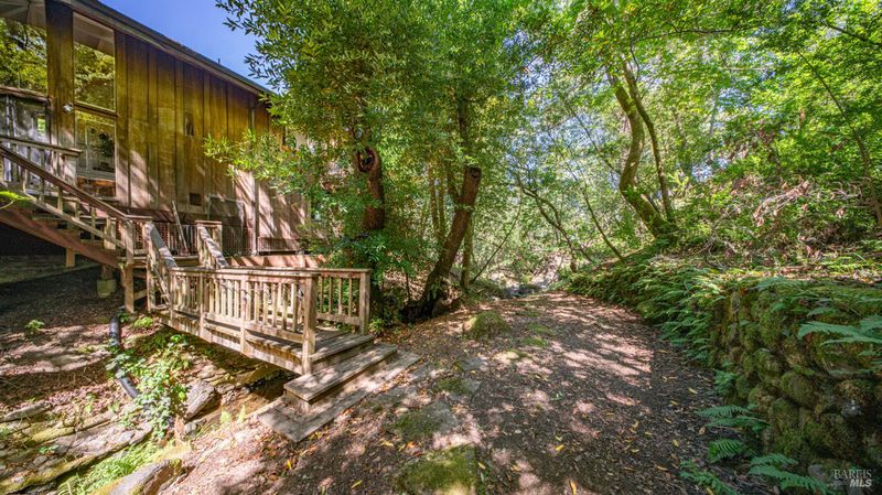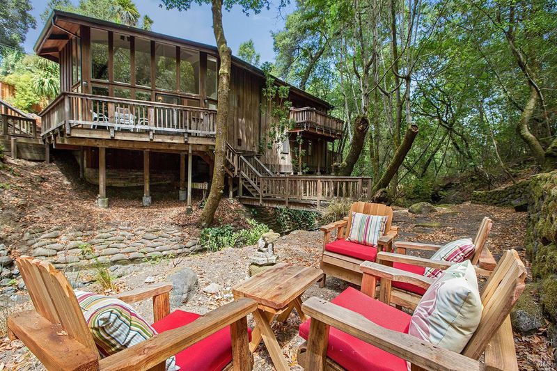Falling Watters Ranch- Tucked into the serene beauty of Woodacre in the San Geronimo Valley, 81 Madrone Avenue offers a rare opportunity to own a private creekside compound surrounded by nature. The main residence features 2 bedrooms and 2 bathrooms, highlighted by a dramatic living room with soaring 20-foot floor-to-ceiling windows that flood the space with natural light. A striking lodge-style stone fireplace anchors the room, creating a warm and inviting atmosphere. The open-concept floor plan flows seamlessly into an updated contemporary kitchenperfect for entertaining or everyday living. Step outside onto the expansive wraparound deck, where the sights and sounds of a cascading creek create a peaceful, retreat-like setting. The natural landscape and flowing water provide a truly special backdrop for relaxing or hosting gatherings with friends and family. In addition to the main home, the property includes a detached 1-bedroom, 1-bath guest studio complete with its own private patio and garden areasideal for guests, extended family, or potential rental income. This unique Woodacre property blends rustic charm with modern comfort, offering the perfect balance of Northern California Living for both indoor and outdoor entertaining---all just minutes from downtown Fairfax, at the gateway to some of West Marin's best parks and Open Space preserves, and adjacent to many of the finest hiking, biking, and riding trails in the Bay Area.