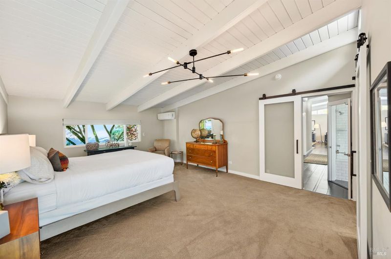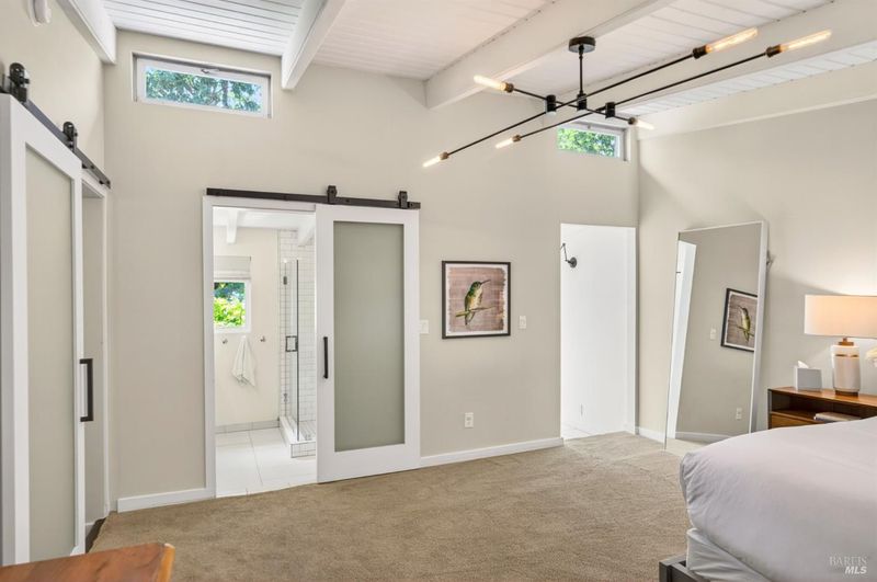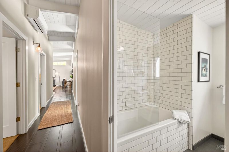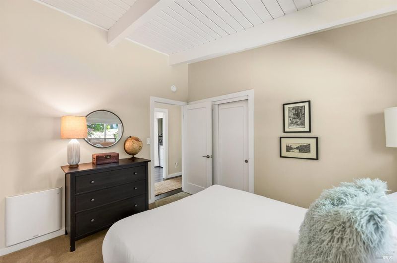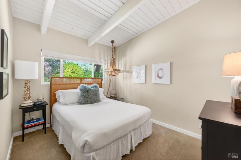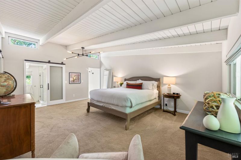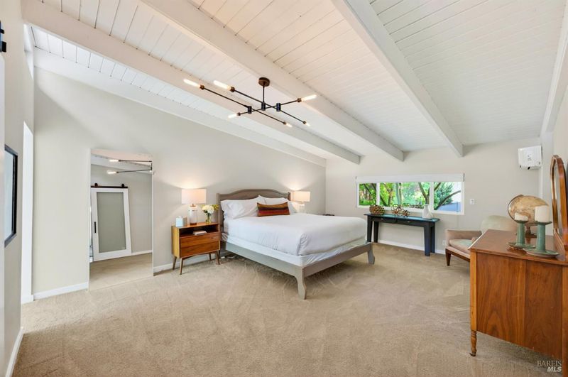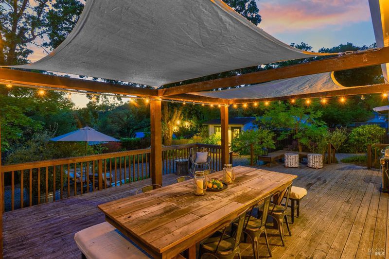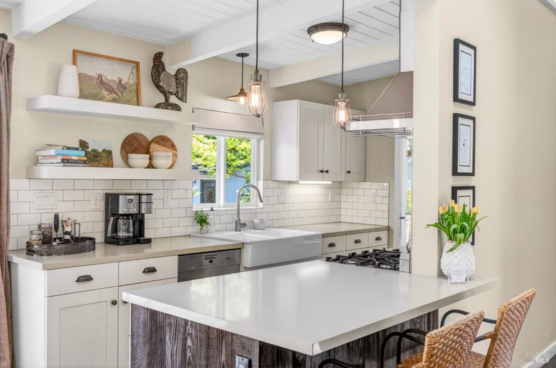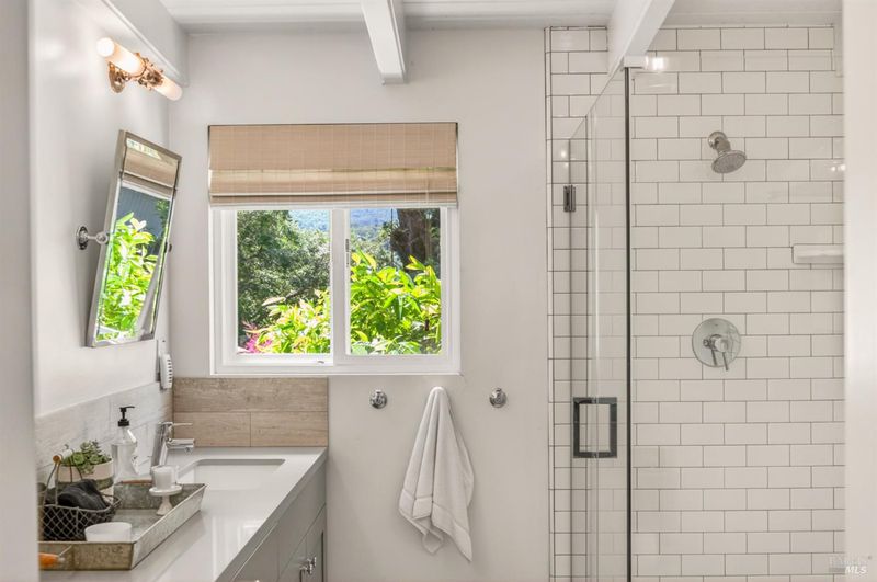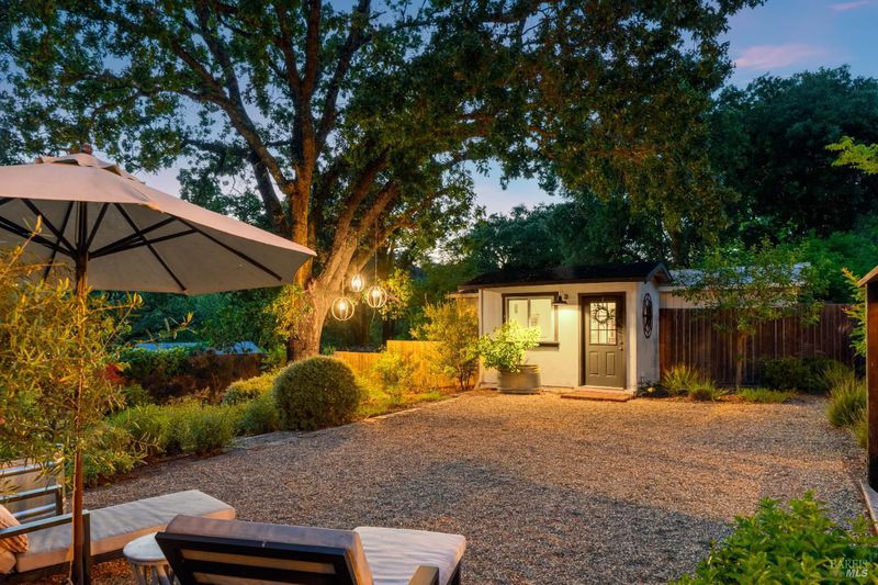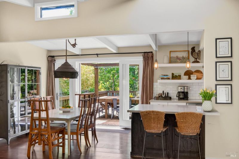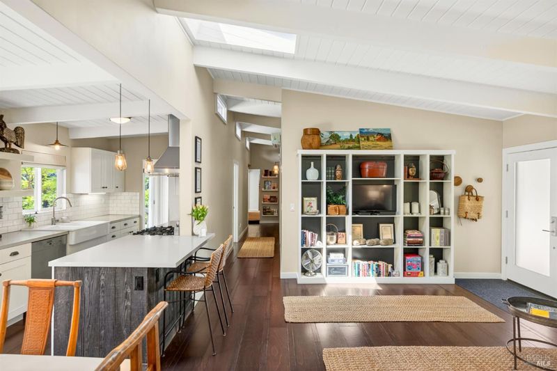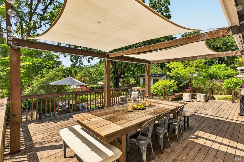 Tucked along a downtown Glen Ellen lane, this beautifully renovated 1954 Mid-Century Modern delivers 3 bedrooms, 2 baths, and an effortless indoor-outdoor flow on approximately 1/3 acre with Sonoma Mountain views. Just blocks from acclaimed restaurants, tasting rooms, a French bakery and gourmet market, the location is as compelling as the home itself. Inside, soaring beam ceilings, skylights, smooth walls, a bay window, and plank flooring create a crisp, contemporary feel, while the stylish kitchen pairs a Bertazzoni range, double farm sink, soft-close cabinetry, Miele dishwasher, and pantry with everyday function. The expansive primary suite accesses the grounds, and both baths have been freshly updated with sleek tile and glass showers. Outside, lush gardens, a generous entertaining deck with custom shade, and room for a pool invite relaxed Sonoma living, with space for lounging, gardening, and play, plus a storage building and public utilities. Sophisticated, refreshed, and move-in ready, this is Glen Ellen living with a modern edge.