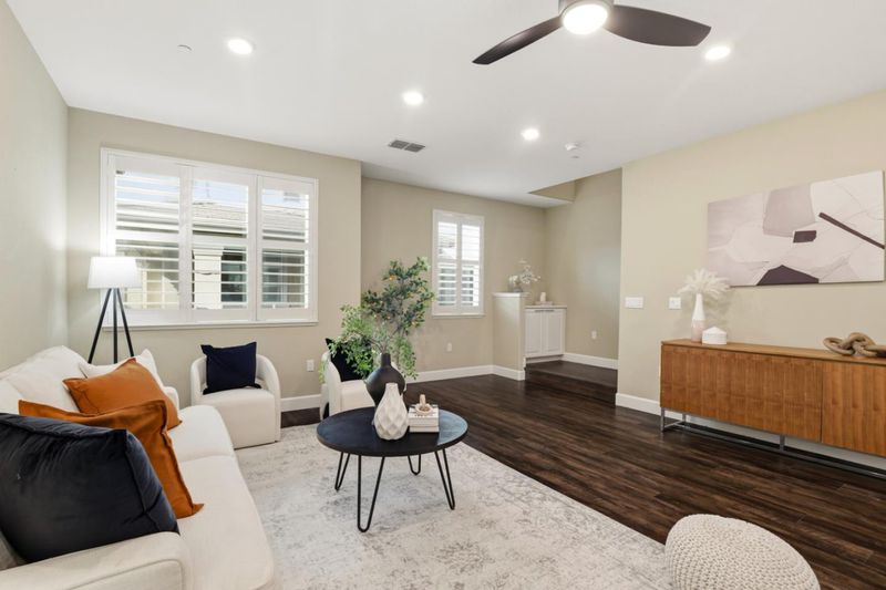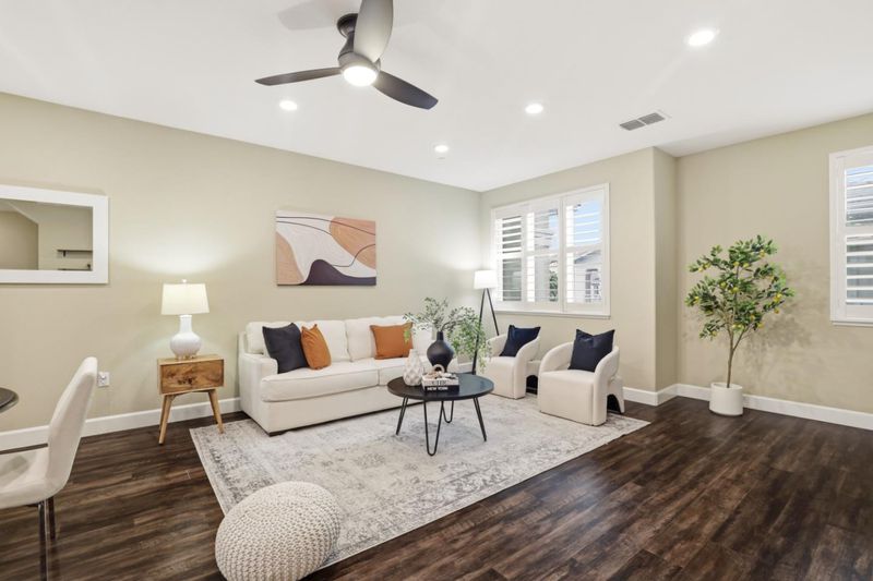Modern, spacious, and thoughtfully designed, this stunning 3-bedroom, 3.5-bathroom townhome offers 2,093 sq ft of comfortable living in one of San Joses desirable communities. Built in 2017, this three-story residence stands out as one of the larger floor plans in the complex, featuring a highly functional and versatile layout. The ground level includes a private bedroom and full bathroom ideal for guests or multi-generational living. The second floor serves as the heart of the home, showcasing an open-concept kitchen, dining, and living area perfect for entertaining, complete with ample cabinetry, generous counter space, and a conveniently large pantry. Upstairs on the third level, youll find a spacious primary suite along with an additional bedroom, a full guest bathroom, and a flexible loft/living area that can be used as a media room, office, or play space. Additional highlights include a 2-car garage, in-unit washer& dryer, spacious balcony and modern finishes throughout. Enjoy resort-style living with HOA amenities (~$450/month) including a pool, tennis courts, and a beautifully appointed clubhouse. Ideally located & walking distance from a vibrant shopping center featuring: Chipotle, Five Guys, Vitality Bowls and much more. Easy access to freeway& 20 mins from the airport!