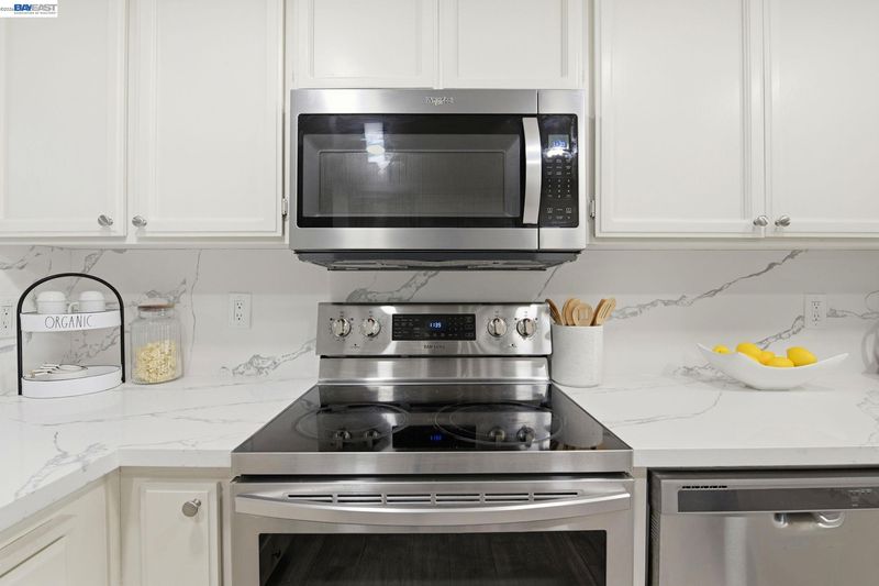 - Dishwasher, Electric Range, Microwave, Refrigerator, Dryer, Washer, Gas Water Heater, Breakfast Bar, Counter - Solid Surface, Eat-in Kitchen, Electric Range/Cooktop, Updated Kitchen